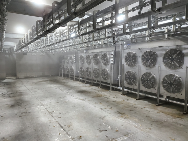 速凍冷庫通常在預(yù)冷庫之后,通常食品經(jīng)處理預(yù)冷后在速凍冷庫冷凍。